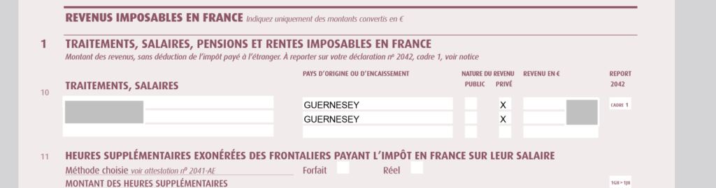 Lorsque les revenus ont été perçus au Royaume-Uni (et saisis ainsi dans la déclaration), le pays d’origine de ces revenus apparaissant dans la déclaration n°2047 est GUERNESEY (île anglo-normande).