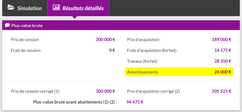 Le calcul de la base imposable prendra alors en compte l’amortissement dans le retraitement du prix d’acquisition :