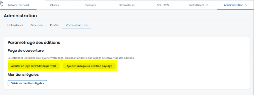 Pour cela, rendez-vous sur l’onglet « Administration » puis « Votre structure » et cliquez sur :