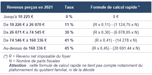 Revalorisation de 1,4% du barème de l’impôt sur le revenu pour les revenus de 2021 pour neutraliser les effets de l’inflation sur le niveau d’imposition.
