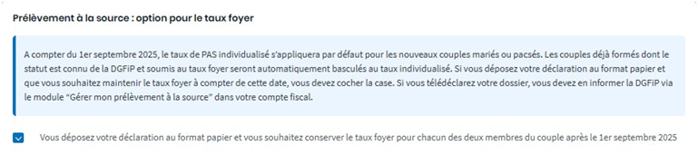 A compter du 1er septembre 2025, le taux de PAS individualisé s’appliquera par défaut pour les couples mariés ou pacsés soumis à une imposition commune. La bascule sera automatiquement effectuée par la DGFiP.