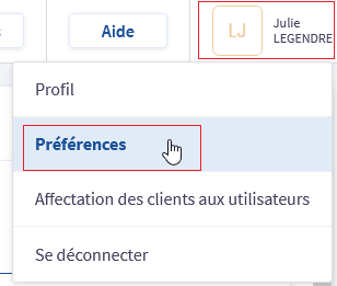 1. Via votre menu utilisateur, rendez-vous dans la page Préférences de Clickimpôts.