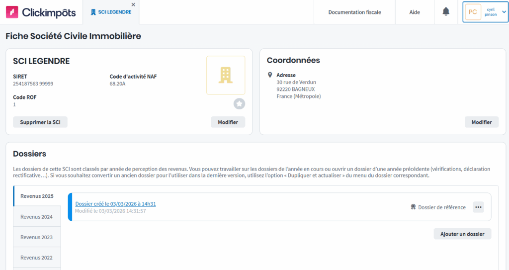 Saisissez les données d’identification de la SCI.