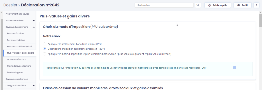 Si vous avez déjà déposé un dossier avec application du PFU et présence de plus-value / revenus mobiliers au quotient, vous pouvez déposer une déclaration corrective jusqu’à la date limite applicable au dossier.