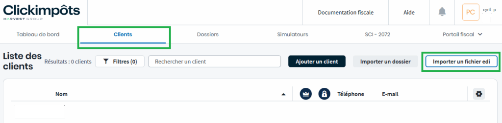 1. Cliquez sur l’onglet Clients de Clickimpôts.